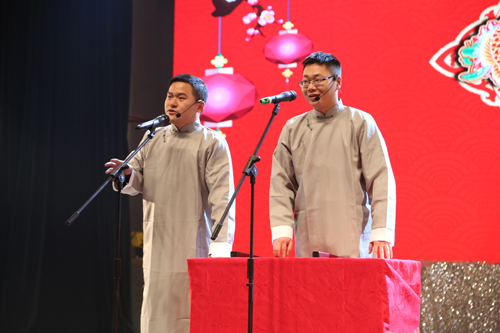 晚会在大型开场舞《欢聚一堂》中正式拉开帷幕,歌曲、相声、舞蹈、小品、乐器演奏等形式各异的节目精彩纷呈。由院工会选送的钢琴弹唱《明月几时有》展现了临床医学院/附属医院人才济济和深厚的文化底蕴。团委职工带来的相声《对春联》掀起一阵阵掌声,将晚会带入高潮。由国际交流学院留学生乐队带来的《Players Empire》嗨翻全场。同学们自编自演的《青春校园》、性感的爵士舞《feeling myself》、情歌对唱《爱的华尔兹》等节目获得全场热烈的掌声。最后晚会在《太行山上》、《当那一天来临》两首曲目中落下帷幕。