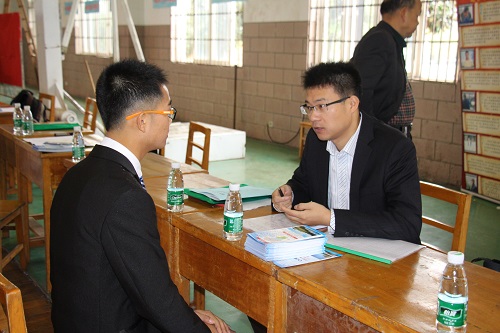 洽谈会上,有些公司对毕业生进行了现场面试。对于第一次面试,毕业生不免有些胆怯,但他们还是克服了内心的紧张,积极回答了面试官的问题。面试后,机材学院A1311班潘得平接受采访时说道:此次洽谈会对我来说是一个很好的就业平台,我会珍惜每一次的应聘机会,为自己的职业生涯创造一个良好的开端。此外,更有毕业班的班主任和全体辅导员老师来到招聘会现场,为毕业生保驾护航。老师们表示,希望能用已有的学识和经验,帮助同学们有效的投递简历,顺利找到工作。