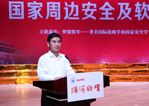 5月12日下午,著名军事专家罗援少将应邀来我校,作客我校第156期濂溪讲坛,为广大师生作了题为《周边安全环境及软实力建设》的国防教育报告。全体校领导、部分兄弟院校及地方有关领导、机关各处室、各二级学院及学生代表1000多人参加报告会。报告会由校党委副书记魏立平主持。