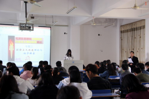 课后,在同学们的热情邀请下,陈春生副校长对本节课程进行了点评。陈副校长指出,学校一直以教学工作为中心,恰逢今年本科审核评估,思想政治理论课是思政教育的主渠道,思政课理论性较强,指导性意义大。陈副校长认为,同学们的学习状态精神饱满、听课认真;赵文老师的课件内容丰富,授课能围绕课程重点,清楚地讲述了新民主主义革命的历史地位和意义,波澜壮阔的历史与现实相联系,带给大家深厚的历史感和理论思考。陈副校长希望同学们能够在课上认真学习,课下细细体会,将思想政治理论课和学习、生活结合起来,了解中国革命历史,领会党的理论对国家、民族、社会发展的伟大意义,让自己成为有觉悟、有责任担当的大学生,为祖国的社会主义事业发展做出贡献。同学们对陈副校长的讲话报以热烈的掌声。