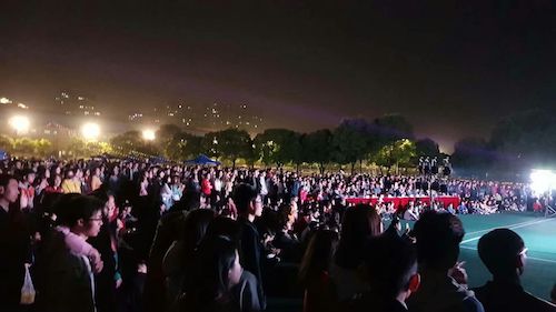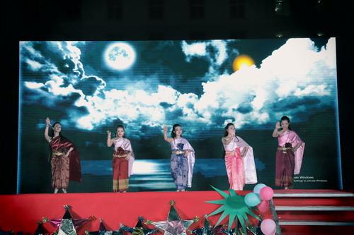晚上18:30左右,夜幕降临,晚会正式开始。九江学院校长刘晓东先生、副校长杨耀防先生和陈春生先生等校领导同志亲临晚会现场,九江学院副校长杨耀防先生致辞。接着,柬埔寨留学生带来的特色舞蹈《祝福舞》、《淑女舞》、《面具舞》、《月亮舞》等和中国武术、乐器、相声等传统中华曲艺节目轮番上演,副校长杨耀防先生也登台献唱一首《中国功夫》将现场气氛推向高潮。晚会接近尾声,柬埔寨留学生们共同唱起歌曲《柬埔寨的骄傲》,并走向主席台邀请出席的领导和老师上台合影留念。现场歌声、笑声、音乐声聚合在一起,一片喜庆欢腾景象。