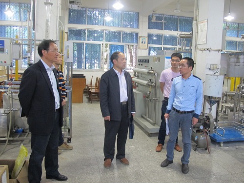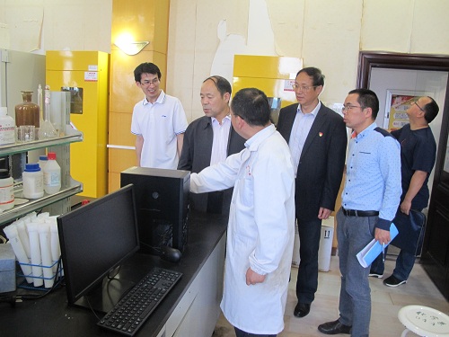 督查过程中,督查小组首先听取了化环学院副院长曹小华关于本科教学审核评估工作汇报;对院长严平和党委书记刘新强进行了访谈;查阅了审核评估指标体系中人才培养计划、教学大纲、实验大纲、毕业设计(论文)、本科试卷、领导听课记录等相关材料;对学院陈浩、吴传保两位老师进行了听课看课;最后实地走访了解学院实验室场地及教学仪器设备等情况;纪岗昌副校长还亲切看望了学院省级生态化工工程技术研究中心正在开展科研工作的老师,勉励他们多出业绩、多出成果,为学校发展添砖加瓦。