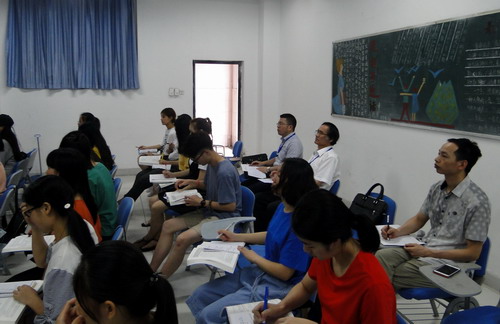 6月12日上午10:15—11:00,本科教学工作审核评估预评估专家组组长、华中师范大学原副校长李向农教授来到文友楼105教室,听取了徐波老师为文传学院2017级汉语言文学专业学生讲授的《〈庄子〉精读》课程。课后,李向农教授与徐老师进行了简单交流,并查阅了上课教材。