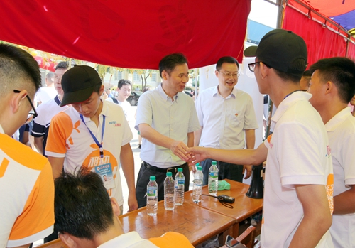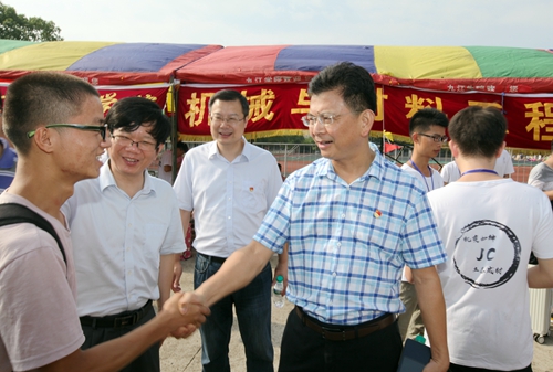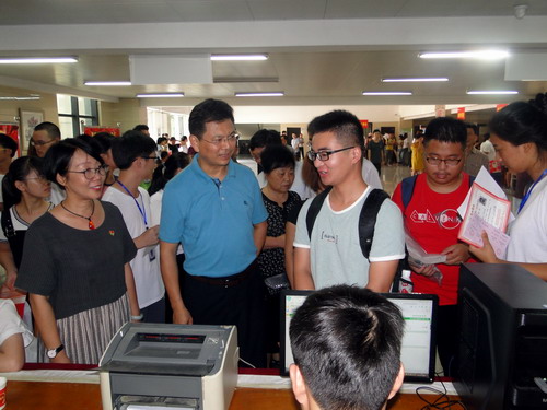 学校党政领导对迎新工作高度重视。校党委书记赵伟、校长刘晓东对今年迎新工作提出了明确而具体的要求。学校专门召开迎新工作专题会,对迎新工作进行布置安排。相关部门各司其职、互相配合,提前做好新生宿舍的整修,维护好迎新信息系统,加强校园秩序管理和安全巡逻,加强后勤饮食保障,确保了迎新工作的顺利进行。新生报到第一天,校党委书记赵伟,校长刘晓东,副校长王万山、杨耀防、夏启国、查振华先后来到三个校区迎新报到现场实地检查指导迎新工作、看望新生和家长。他们与新生和家长亲切交谈,祝贺和欢迎新同学们考入九江学院,询问他们有无问题和困难,并勉励同学们入学后努力学习、刻苦钻研、奋发成才。