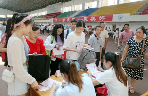 为方便提前来校新生的报到,从9月3日下午开始,九江学院的迎新工作就已经开始。3日下午就有3000余名新生来校报到。9月4日,迎新工作全面展开。一大早,学校相关各部门和各院系的迎新工作人员早早来到新生报名点各就个位,等待着来自全国各地的新生的到来。