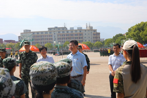 9月11日上午,刘晓东校长在王万山副校长陪同下在军训现场看望了正在军训的2018级新生和军训教官,承训部队和学生处负责人随同。