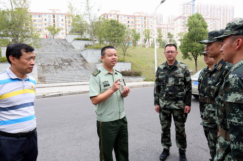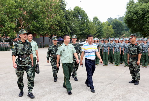 罗满支队长、曾勇华参谋长在军训现场检查时要求教官们时刻保持良好的军人姿态,给同学们做出榜样,严格要求,灵活组训、文明军训,圆满完成上级交给的光荣使命,不辜负部队和学校的殷切期望。