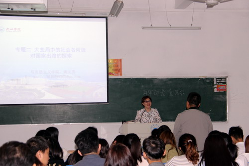 9月27日上午,刘晓东校长到文友楼104教室,随堂听取了马克思主义学院教师姚文秀博士为文传学院A1641、A1642班学生讲授的《中国近现代史纲要》课程。马克思主义学院院长汪力平陪同听课。