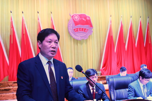 校工会主席金葆金代表工会组织致贺词。
