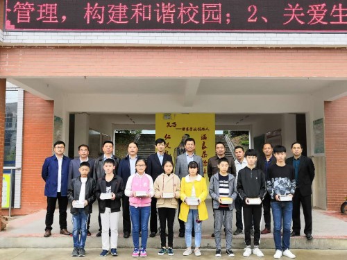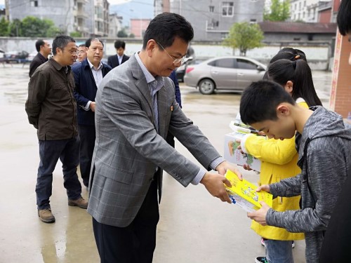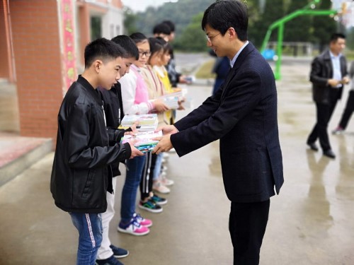 在官莲乡,刘校长应邀为该乡“青莲讲坛”面对中小学生作了《个人成长与国家命运同频共振》为主题的首场报告。报告结束后,刘校长一行考察了该乡中、小学,了解了两所学校教育教学和师资情况,并亲自向两所学校学生赠送了图书。