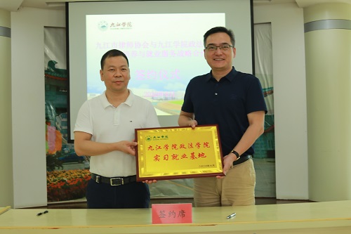 高翔与刘晖签署《九江市律师协会九江学院政法学院人才培养与就业服务战略合作协议》。
