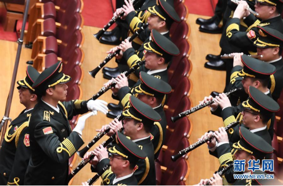 3月5日,第十三届全国人民代表大会第四次会议在北京人民大会堂开幕。这是军乐团在演奏。新华社记者 金良快 摄