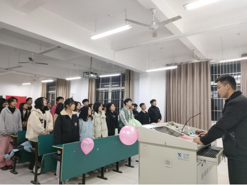 11月14日,理学院A2131班晚自习在辅导员组织下齐唱《没有共产党就没有新中国》。