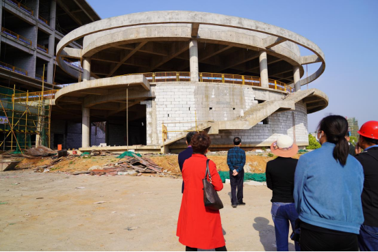 赵伟一行来到红色文化教育馆建设基地,认真察看了现场施工情况、施工质量、施工进度等。