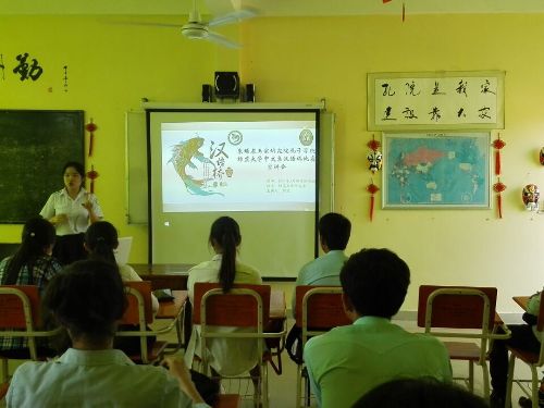 刘欢老师对“汉语桥”比赛的要求与参赛项目做了介绍,并让学生观看了“汉语桥”比赛的相关视频。