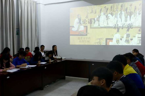 5月20日晚,浪井文学社与诸多《论语》爱好者齐聚逸夫图书馆众创空间,共同参与浪井文学社第六期品读活动—“《论语》—君子观”主题活动。本期活动由文化与传媒学院副院长吴国富主讲,庐山文化研究中心的滑红彬老师与逸夫图书馆的刘佳佳老师应邀出席了活动。