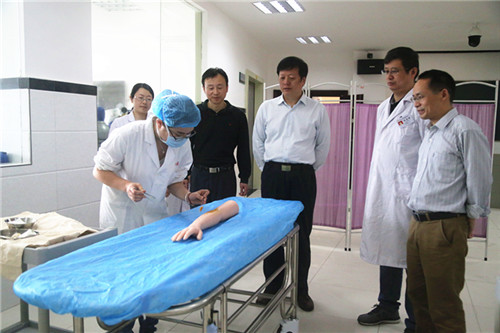 五月中下旬,临床医学院2011级临床医学本科专业学生毕业技能多站考试陆续开展。为严肃考场纪律,加强考风建设,确保各项考试有序开展,5月31日上午,临床医学院张志平院长、黄啸林副院长带队巡视考场,检查考务工作、考场秩序,教学管理科刘丹科长、洪永春副科长,临床技能中心韩峰主任等科室负责人参加巡考。