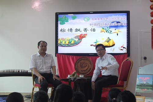 帅式毅院长提出要求志愿者教师们要挖掘中国传统节日的深层意义。他指出,可通过端午节活动来宣扬爱国主义,表达祈福感恩之情。在向学生讲述中国传统节日文化的同时,要加入本土元素,比如柬埔寨的棕子,送水节的龙舟赛等。