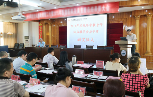 为切实提高临床实践教学水平,促进教学质量不断提高,临床医学院/附属医院组织全院住院医师规范化培训带教老师开展了“2016年度临床教学查房竞赛活动”。6月16日,临床医学院/附属医院在行政办公楼九楼举行颁奖仪式,对获奖教师进行表彰,至此,为期十天的临床教学查房竞赛活动圆满结束。