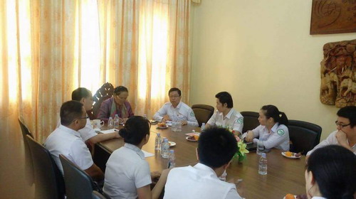7月26日,柬埔寨王家研究院孔子学院在孔子学院芳华大楼召开2015-2016年度工作总结会议。柬埔寨王家研究院院长、孔子学院理事长克洛媞达院士(H.E.KHLOT Thyda)、柬埔寨王家研究院孔子学院院长谢莫尼勒阁下(H.E. CHEA Munyrith)、中方院长帅式毅先生及各教学点负责人共14人参加会议。