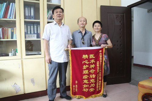 近日,袁老先生携老伴带着锦旗和亲手书写的感谢信,来临床医学院/附属医院找到纪委刘英明书记,向临床医学院/附属医院神经外科全体医护人员表达深深的感激之情。