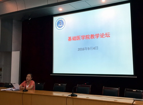 9月4日,基础医学院在浔东校区报告厅举行“教学论坛”活动,全体教师参加了此次会议,会议由副院长郑美蓉主持。