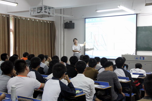本次公开课中,周玉华老师通过对上一节课知识点的回顾,引入了本节教学内容——直线的投影,通过例题讲解及运用多媒体课件,形象直观、由浅入深的引导学生对当堂知识的理解,并在课堂上精心选择练习题,启发学生思考,帮助学生进一步巩固所学知识。同时在教学中还穿插前面章节的所学内容,注重学生对前后知识的融会贯通。参与活动的听课教师在课堂上认真观摩,虚心学习,积极反思,很多老师都在听课记录本上写下听课的感受及建议。