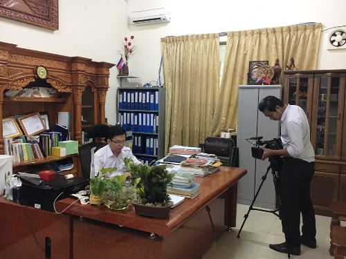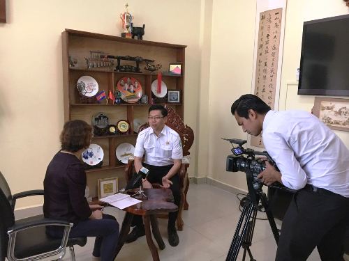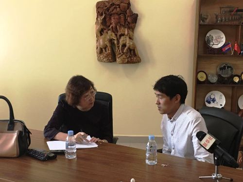 10月7日上午,新华社记者谢美华、张艳芳在柬埔寨王家研究院本部对柬埔寨孔子学院谢莫尼勒院长进行了专访。
