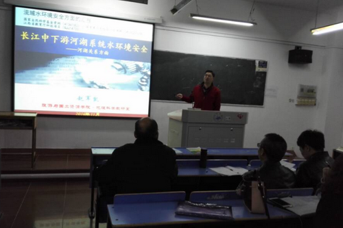 本次报告会,由刘新圣、赵军凯两位博士分别作了题为《高寒地区树木蒸腾限制因子的季节移动:来自藏东南高山林线的观测证据》、《流域水环境安全方面:长江中下游河湖系统水环境安全——河湖关系方面》的学术报告。刘博士主要围绕“研究背景、研究地点和方法、主要结果、结论”这几方面分别作了阐述。赵博士围绕“研究意义与研究区域、河湖水系连通的概念内涵、长江干流来水来沙的变化、人类活动对江湖关系的影响、流域环境变化对江湖关系的影响、江湖关系演变的机理、江湖关系演变的生态环境效应”这些方面与大家分享了自己的研究成果。两位博士报告深入浅出,幽默风趣,将生涩的专业知识、研究成果讲得浅显易懂。全体教师认真听取了两位专家的报告内容。