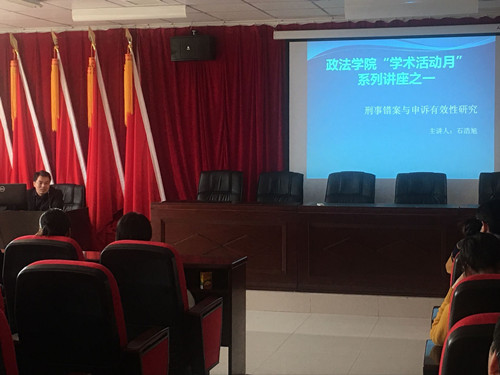 11月11日下午,为进一步浓厚学术氛围,激发学生对学术的兴趣,政法学院举办题为“刑事错案与申诉有效性研究”的首场学术讲座。主讲人为获得过国家社科基金项目的石浩旭博士,政法学院部分没课老师和法学专业的学生聆听了讲座。