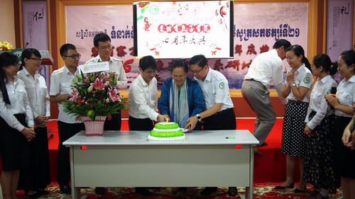 答谢晚宴在“祝您生日快乐”的生日歌声中开始,克罗媞达院长在众人满满的祝福中吹灭了生日蜡烛,大家共同许愿,祝愿孔子学院明天更美好,祝愿中柬友谊万古长青。谢莫尼勒院长和夏修龙院长代表孔子学院对在场各位嘉宾表示感谢,感谢大家一直以来对孔子学院的付出和努力,感谢汉语教师无私的奉献,感谢孔子学院全体工作人员的团结奋进和敬业精神。晚宴在轻松愉快的氛围中圆满结束。(洪姗)