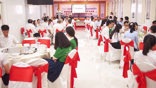 宴会开始前,克罗媞达理事长与江西商会代表进行了座谈,她说,孔子学院成立以来发展很快,规模不断扩大,形成了自己的特色,成为柬埔寨知名的品牌,孔子学院的发展离不开社会各界的支持。7年来,江西商会给予孔子学院极大的支持和帮助,正是由于社会各界的支持孔子学院才有所成就。