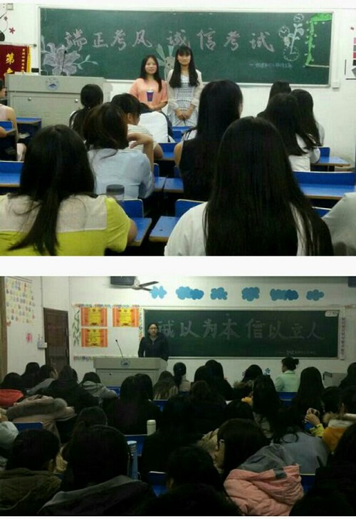 我校大学生无人超市诚信精神受到媒体和社会热捧,让学校看到加强诚信教育的必要性。为进一步学习宣传“无人超市”的诚信教育典型事迹,教育引导学生“言必信、行必果”,努力做到知行合一,使诚信观念深入人心,学校决定在全校范围广泛开展诚信教育活动。为了做好此项工作,护理学院采取了一系列措施,大力推进学院诚信之风的形成。一是开展主题班会及团日活动,使诚信观念深入人心,有效减少了学生考试舞弊率;二是建立诚信制度,完善诚信机制,对考试舞弊及其他不诚信行为记录在档,并作通报批评,用制度规范行为,从而促进诚信教育不断向纵深发展;三是构建诚信文化,引领价值取向,通过黑板报、手抄报等形式对同学们进行诚信宣传,将诚信教育渗透进校园的每个角落。