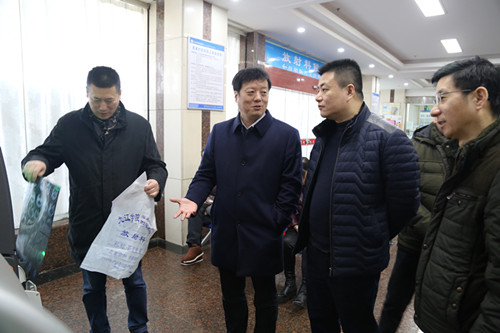1月20日上午,九江石化总厂管委会主任梁凯、石化总厂医院院长向礼欣、医务科科长万建平一行来临床医学院/附属医院洽谈合作事宜。临床医学院/附属医院院长张志平、副院长黄啸林,医务科科长但传军等相关职能部门负责人热情接待并陪同参观交流。