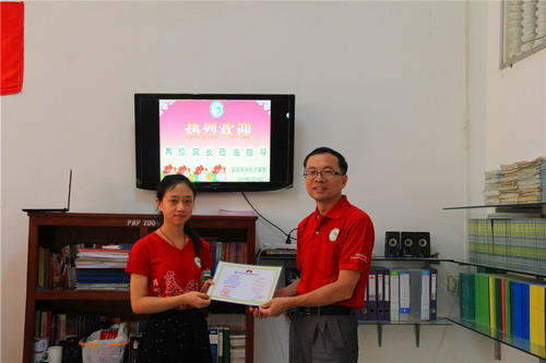 谢莫尼勒院长为孔子课堂颁发“最佳团队”荣誉证书