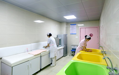 病区新增示教室,方便医务人员开展多学科诊疗,以及进行各类学习,以提高医务人员的业务水平;增加了等候区及儿童游乐区,提供给家属等候及儿童玩乐,并在等候区安装了监控直播屏,家属可在等候区即时观看新生儿游泳和洗澡,尽显服务人性化。