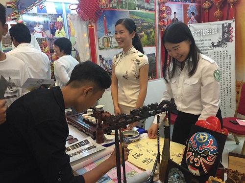 国际语言文化节融汇了不同国家的不同风采,中国馆在这“万国风情街”中独树一帜,参观者在中国馆中多一份体验,便能增加一份对中国的了解。文化是国与国之间沟通的桥梁,中华文化博大精深,每一位来中国馆体验的人都留下了深刻的印象。(陈惠玲)