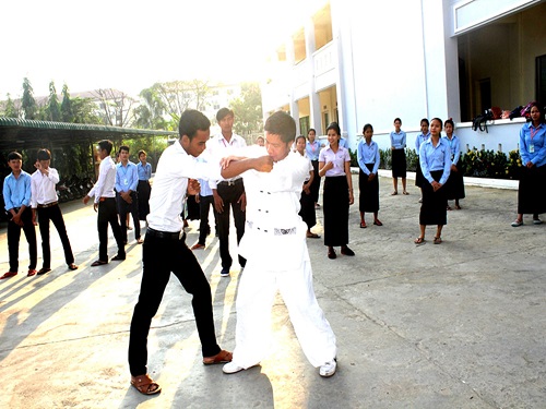 3月14日一大早,伴着晨起的朝霞,柬埔寨王家研究院孔子学院马德望国际大学汉语中心大学生汉语初级班的学生在太极拳中开始了新的一天。太极拳体验交流课程在马德望国际大学汉语中心开设已近一个多月,太极课程不仅在校内引起师生们的广泛关注和喜爱,更是引起校外人士的参与和投入,国内外太极爱好者成为马德望河岸一道亮丽的风景线。