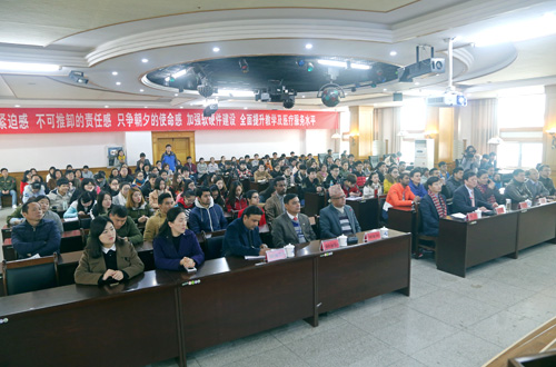 随后,Ramesh Kumar Acharya主席作了题为《尼泊尔的医学教育体系》的学术讲座。临床医学院/附属医院职能部门人员、部分医务人员及在校学生近200人听取了讲座。Ramesh主席渊博的学识,中英双语的精彩演讲,赢得现场阵阵掌声。通过演讲,大家对尼泊尔的医学教育体系有了一个初步的认识。