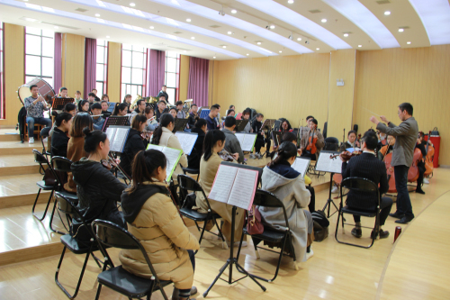 来访人员一行先后参观了“交响音乐排练厅”、“民乐厅”、“舞蹈排练厅”,现场观摩了艺术学院交响乐团、民乐团和舞蹈专业学生的排练展示,并与师生展开了热烈的讨论。