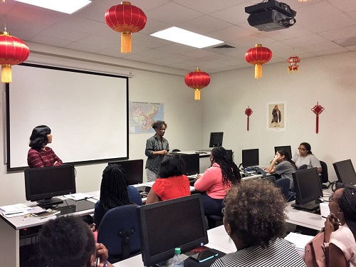 美国当地时间3月31日,美国萨凡纳州立大学孔子学院在孔子学院语音实验室举行了2017年暑期大学生夏令营启动仪式。此次为期两周的暑期夏令营活动是美国萨凡纳州立大学孔子学院举办的第一次美国大学生访华交流项目,旨在邀请孔院学生来华学习汉语,体验中国文化,了解真实的中国。萨凡纳州立大学国际交流中心留学处梅兰妮·史密斯(Melanie Smith)、教育学院助理教授基沙·坎宁安(Kisha Cunningham)、孔子学院全体教师以及二十名来自萨凡纳州立大学的在读学生参加了此次启动仪式。