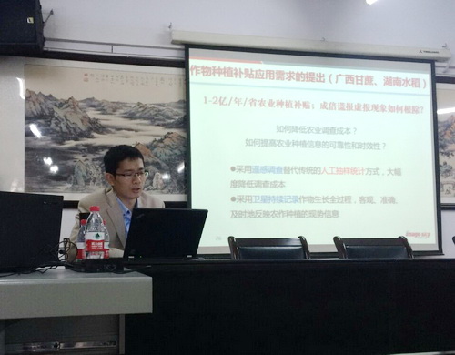 报告的题目是“基于遥感大数据的精准化监测应用研究——以数字农业为案例”。报告从背景需求、方法与结果、讨论与结论三方面展开,详细阐述了遥感大数据在数字农业精细化监测方面的应用方法和效果。报告用了大量的数据、图表和案例,非常形象生动易懂。该公司的王佳晨工程师还为我们展示了遥感大数据平台-ROCK系统,为学院重点实验室建设提供了建设思路和方法。