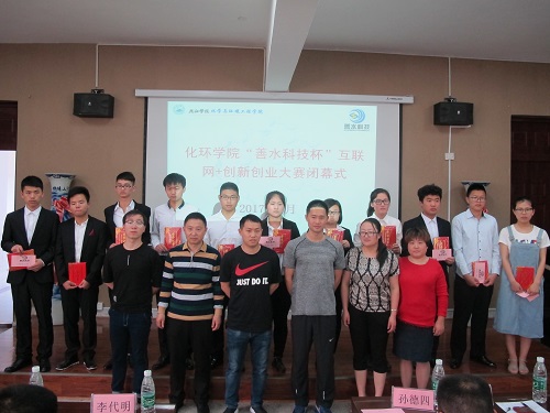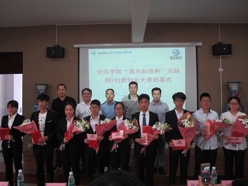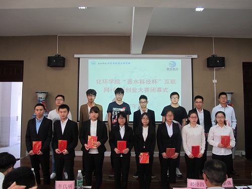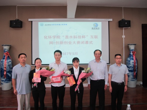 经过学院广大师生的精心策划和组织,化环学院“善水科技杯”大学生创新创业大赛暨颁奖仪式于5月14日在向学楼隆重举行。九名校内外专家评委、学院领导及各职能科室工作人员、指导老师、参赛选手及观众近300人参加竞赛。
