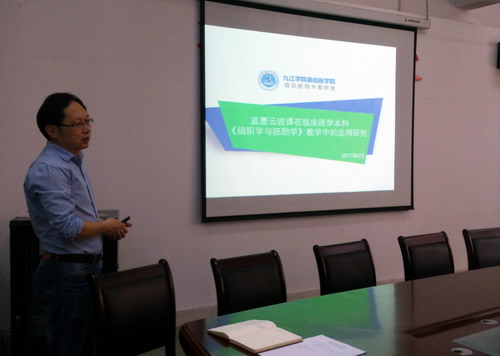 6月16日上午,基础医学院在浔东校区华文楼105实验室举行2017年校级教改课题《蓝墨云班课在临床医学本科组织胚胎学教学中的应用研究》开题报告会。会议邀请了专家评委6人,基础医学院郑美蓉教授担任专家组组长,专家组成员包括何巍、周许峰、梅钧、吴建芳、范文燕老师,课题组成员参加了开题报告,会议由教研科牛力副科长主持。
