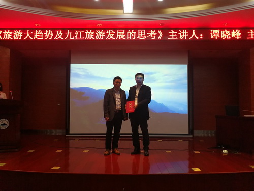 应旅游与国土资源学院邀请,11月3日下午在逸夫图书馆报告厅,九江市旅发委主任、党组书记谭晓峰同志作了题为《旅游大趋势及九江旅游发展的思考》的专题讲座。讲座由学院副院长孙冬英主持,学院专业教师及2016、2017级同学聆听了讲座。