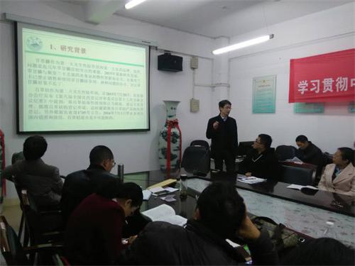 11月29日下午,化环学院在向学楼五楼会议室和向学楼201同时举行了两场学术报告会。在曹小华副院长的主持下,胡庆华、叶志刚、刘芬、黄华南、胡华南5位博士分别代表环境友好高分子与有机硅材料团队、多酸化学与绿色催化团队、化工过程与装备团队、精细化学品化学团队、工程中心团队在向学楼五楼会议室做了学术报告。在孙德四副院长的主持下,孙剑奇博士代表基于生物技术的矿产资源综合研究团队在向学楼201做了学术报告。学院全体教师参加了此次学术报告会。