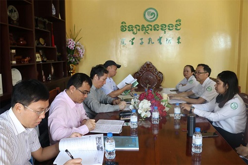 夏修龙院长和苏碧娜院长对李星良副院长一行的到访表示热烈的欢迎,夏修龙院长向李星良副院长一行介绍了柬埔寨王家研究院孔子学院汉语教学、文化交流、科学研究等情况,并与李星良副院长一行交流讨论了柬埔寨汉语教育的现状。