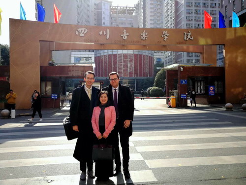 应成都捷克领事馆和四川音乐学院的邀请,12月8日下午3点,我校艺术学院理查德∙波尔博士与王荇荇博士在四川音乐学院的聂耳音乐厅举办了两个半小时的交流讲座,成都捷克领事馆的Tomas Hlavan先生、钢琴系副主任杨成刚教授等出席了讲座。