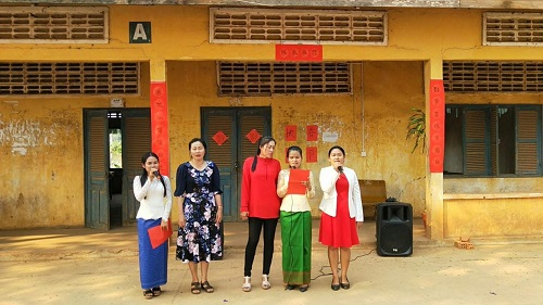 德拜棉芷中学包李兴(PeouLyHeang)校长致辞,他非常感谢柬埔寨孔子学院派遣三位优秀的汉语教师来到柏威夏教汉语,肯定了三位老师的认真工作与辛勤付出。同时,他也向学生们强调了学中文的重要性,鼓励学生努力学习中文。包李兴校长向现场的来宾与师生献上了诚挚的新年问候。