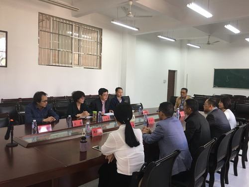 4月19日,应文传学院的邀请,湖口广播电视台台长陈美清一行来到文传学院与文传学院领导洽谈广播电视编导及播音主持与艺术专业建设事宜。与陈台长同行的还有湖口广播电视台副台长龚丹、董小海,办公室主任王晓红、新闻部主任梅霞。文传学院党委书记汤红莲,副院长朱全国,副书记吴疆,副院长陈建军,办公室主任田中兴,广编教研室主任李立广、播音教研室主任王苓等一同参加了会议。